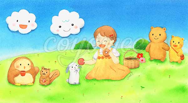 子どもや動物、雲・空を水彩で描いています。ほんわか心温まる作品作りを心がけています。オリジナル絵本の制作もしています。